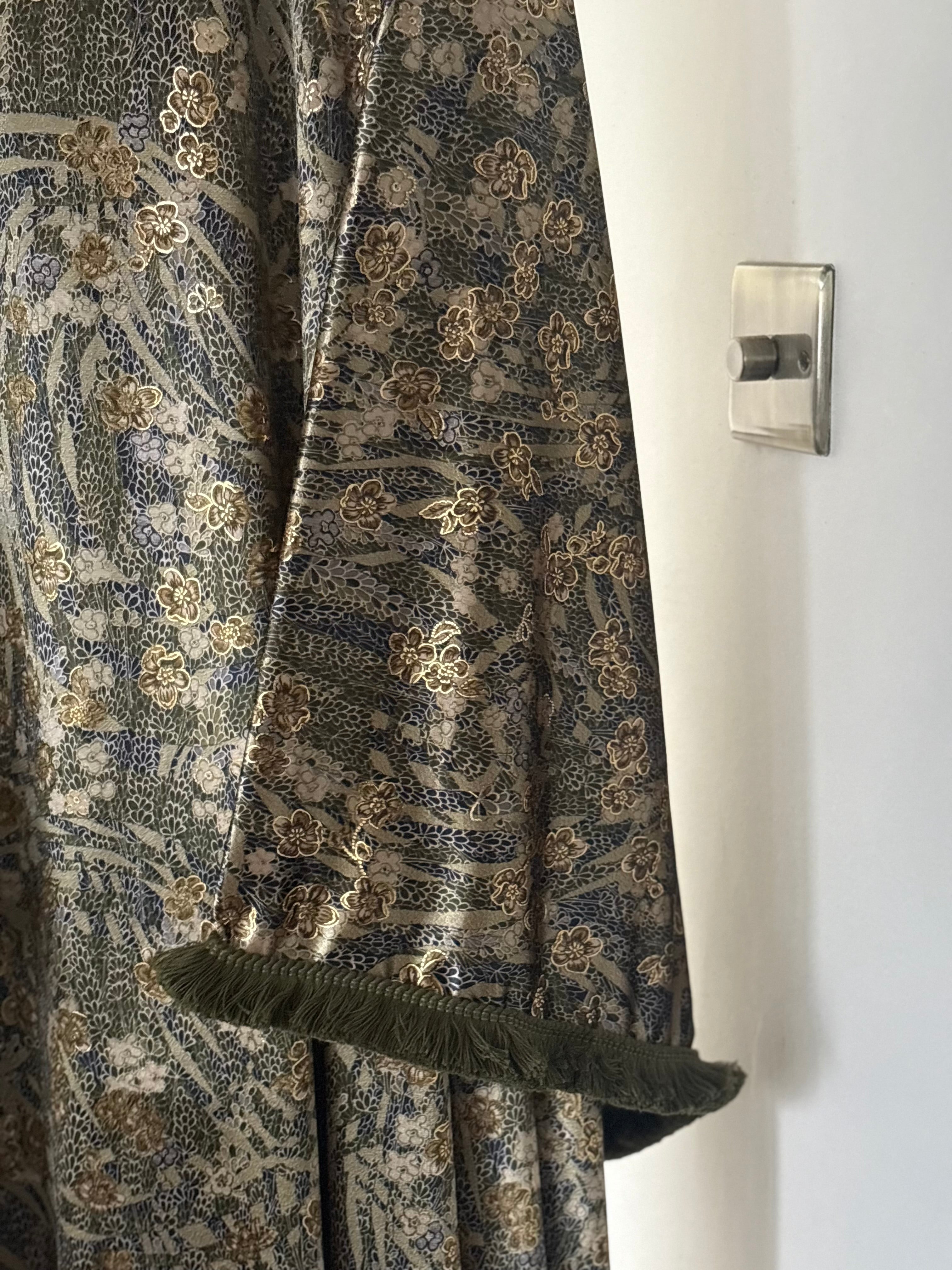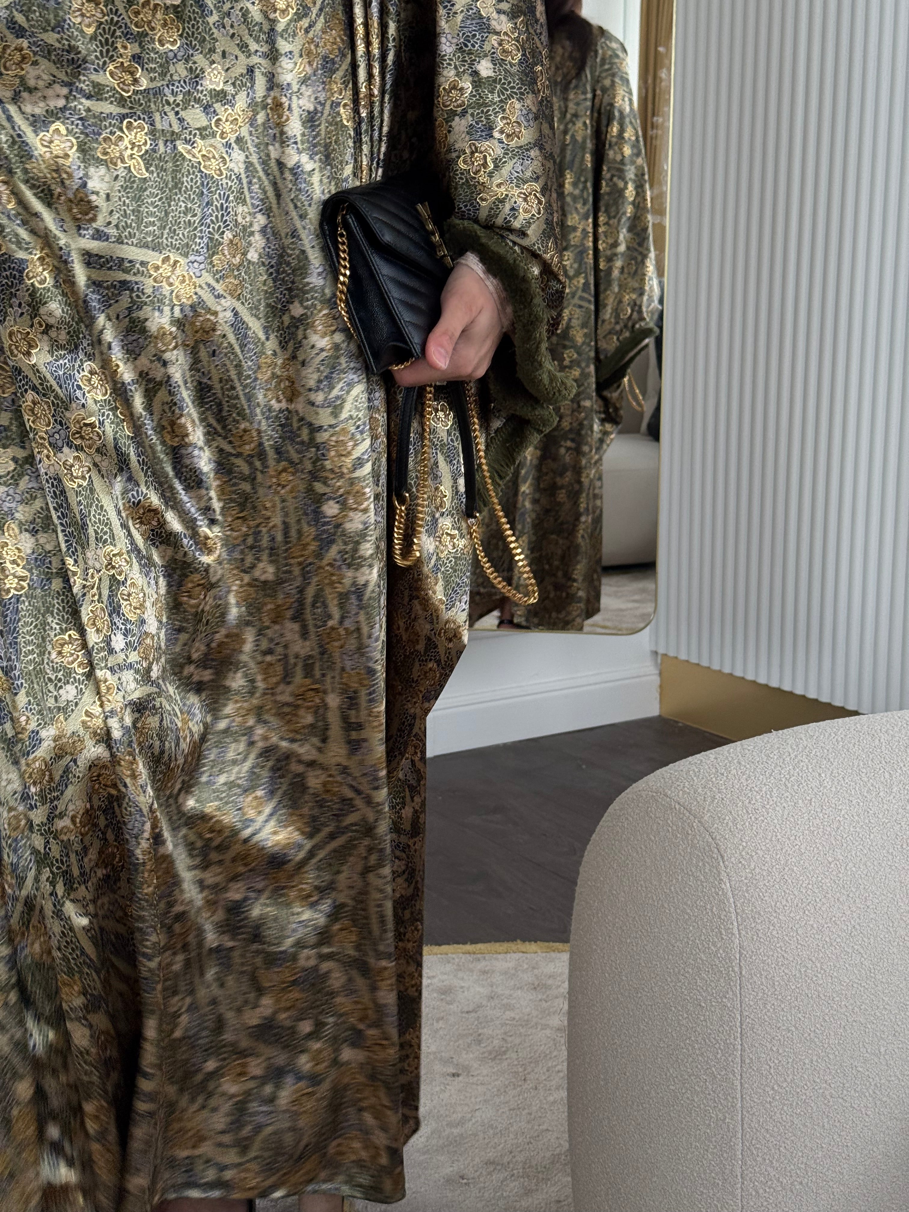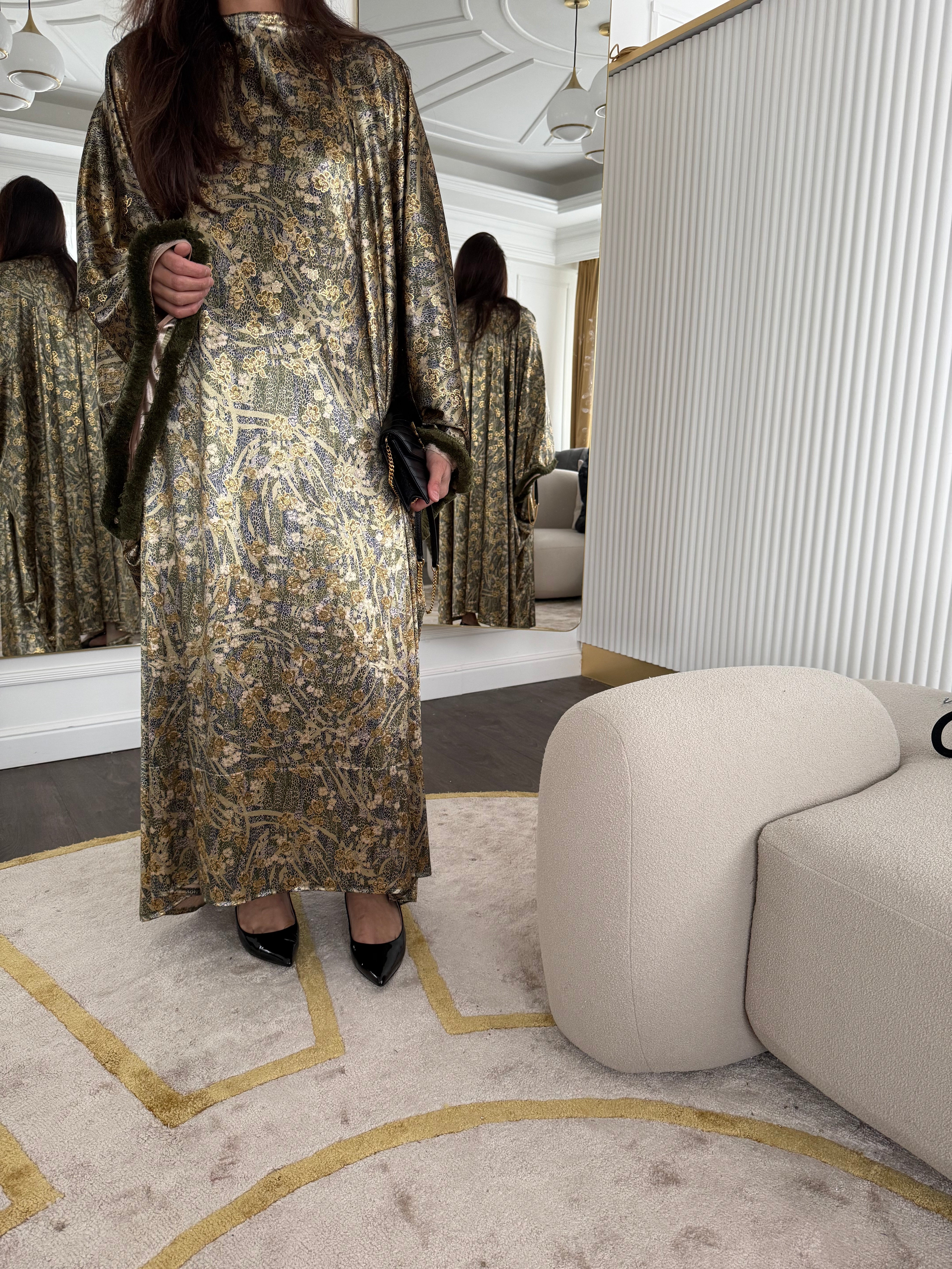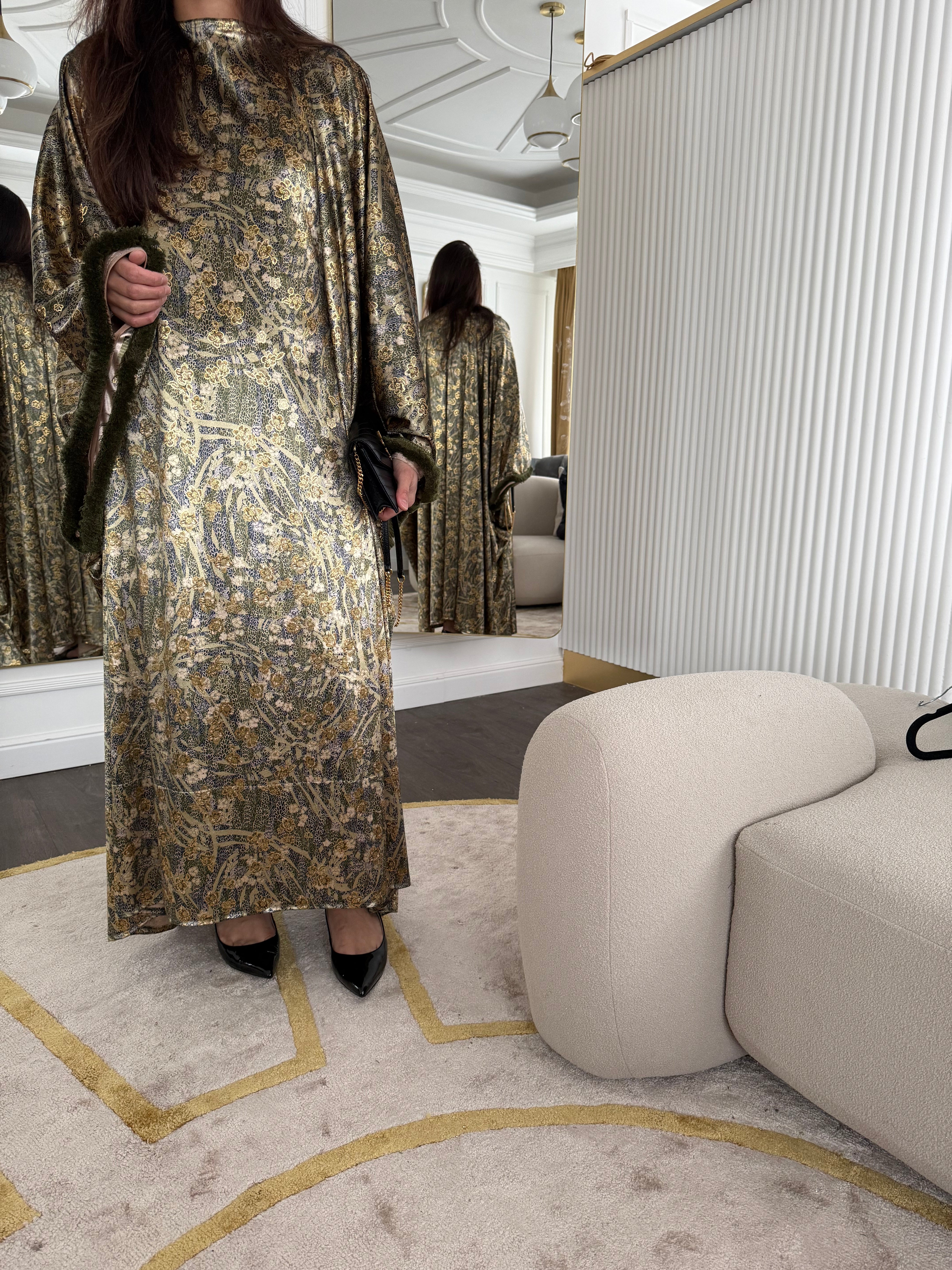 The Kings Garden Kaftan epitomises understated elegance with its rich olive base elevated by intricate gold detailing that whispers of heritage and refinement. Crafted with meticulous attention to traditional craftsmanship, this piece features luxurious cotton tassel trim adorning the cuffs—a signature touch that grounds opulence in authentic artistry. The integrated belt allows for personalised silhouetting, whilst the carefully curated length options ensure a flattering fit for every frame. Perfect for Ramadan evenings and Eid celebrations, this timeless kaftan bridges contemporary sophistication with deeply rooted cultural tradition, making it an essential addition to any discerning wardrobe.