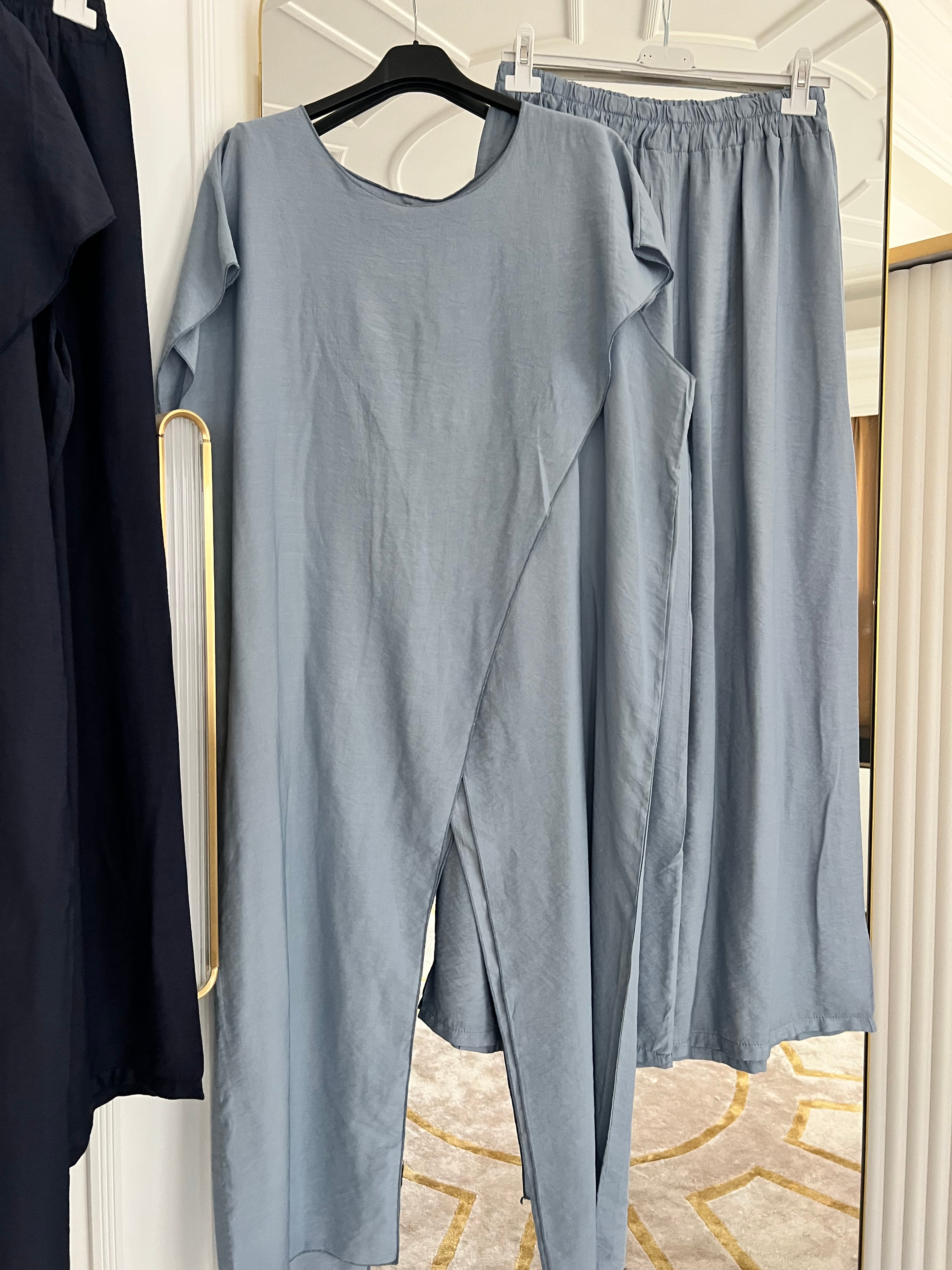 The Longline Maxi Drape Coord is the perfect addition to your holiday or summer event wardrobe. Its double panel drape design comes in 4 stunning shades, complementing any style. With a freesize option for UK sizes up to 16, the elasticated waist trousers provide both comfort and style.